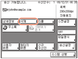 메모리가 가득차게 되면 시스템 상황 화면을 사용하여 불필요한 수신 문서를 삭제합니다. (메모리의 문서 상황 확인/변경)
