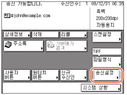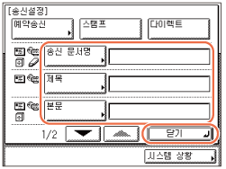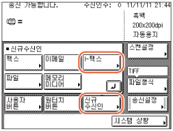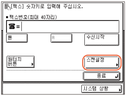 필요에 따라 [예약송신]과 [스탬프]도 지정할 수 있습니다. 자세한 내용은 송신 시작 시간 지정(예약 송신) 및 이미 스캔된 원고에 스탬프 추가를 참고하십시오.