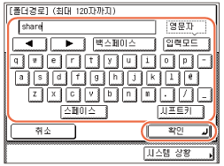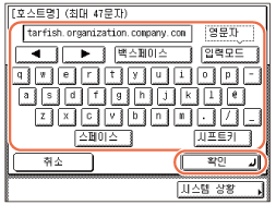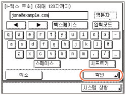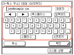 화면 표시 키보드를 사용하여 I-팩스 주소(최대 120자까지)를 입력합니다.