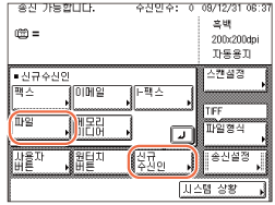 파일 송신이 '허가 안함' 또는 자신의 주소 또는 '지정된 폴더로 송신만 허가함'으로 설정된 경우 [파일]이 표시되지 않습니다. (사용자 설정)
