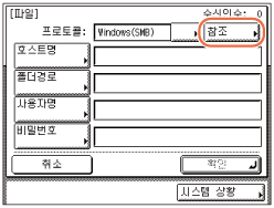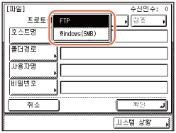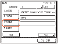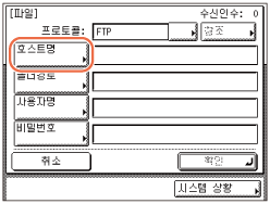 공통 사양 설정의 표시언어 전환을 '설정'으로 설정하면 [호스트명]과 [파일 경로]에 입력한 문자가 올바르게 표시되지 않아 이러한 이름을 참조하지 못할 수도 있습니다.
