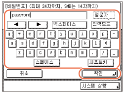 네트워크 비밀번호 입력 화면이 표시되면 사용자 이름 및 네트워크 비밀번호를 입력하고 → [확인]을 누릅니다.