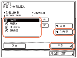 원하는 파일 서버를 선택하고 → [아래로] 또는 [확인]을 누릅니다.