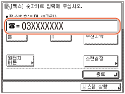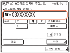 - (숫자 키)를 사용하여 팩스 번호(최대 40자리)를 입력합니다.