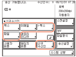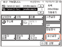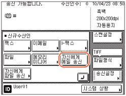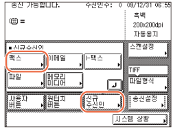 [신규수신인]을 누르거나 → [이메일], [I-팩스], [파일] 또는 [팩스]를 선택합니다.