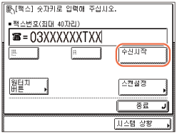 정보에 대한 팩스 복사본이 필요하면 [수신시작]을 누릅니다.