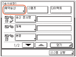 예약 송신 모드를 취소하려면 [예약 송신] → [취소]를 누릅니다.