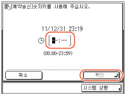 - (숫자 키)를 사용하여 종료 시간을 입력하고 → [확인]을 누릅니다.