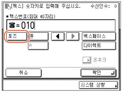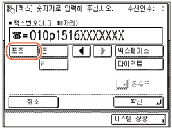 필요할 경우 [포즈]를 눌러 팩스 번호 끝에 포즈 시간을 입력합니다.