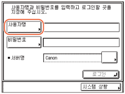 <사용자 ID 및 비밀번호를 입력하십시오.>