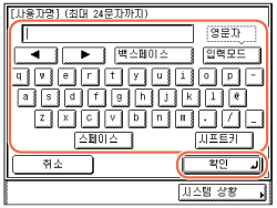화면 키보드를 사용하여 사용자 이름 (최대 24자)을 입력하고 → [확인]을 누릅니다.