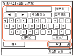 화면 키보드를 사용하여 비밀번호 (최대 24자)을 입력하고 → [확인]을 누릅니다.