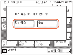 인증된 송신에서만 로그아웃하려면 [송신]을 누르고 부문별 ID 관리와 같은 다른 보안 기능에서 동시에 로그아웃하려면 [디바이스]를 누르십시오.