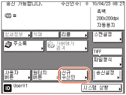 파일 송신이 '허가 안함'으로 설정된 경우 [팩스]가 표시되지 않습니다. (사용자 설정)
