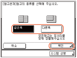 크기가 다른 원고의 무게(용지 종류)가 모두 동일해야 합니다.