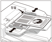 슬라이드 가이드를 조정하여 원고의 상단 및 하단 가장자리와 피더의 가장자리를 맞춥니다.