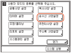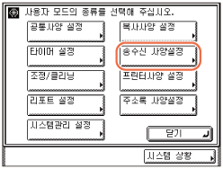(사용자 모드) → [송수신 사양설정]을 누릅니다.![]() |
