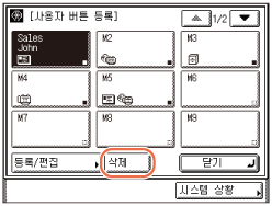 사용자 버튼에 포함된 수신인이 주소록에서 삭제된 경우 주소는 사용자 버튼에 등록된 설정에서도 삭제됩니다.