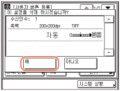 사용자 버튼에 등록된 문서 설정 및 수신인은 전원을 꺼도 삭제되지 않습니다.