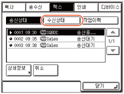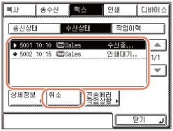 아래 절차에 따라 진행 중인 팩스 수신을 취소합니다.