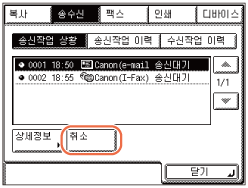순차 동보 송신 동안 작업을 취소하는 경우 문서가 현재 송신되고 있는 수신인 다음의 모든 수신인에 대한 송신이 최소됩니다.