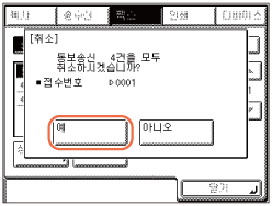 작업이 송신 중이면 [예]를 눌러도 취소되지 않을 수 있습니다.