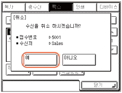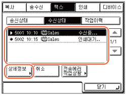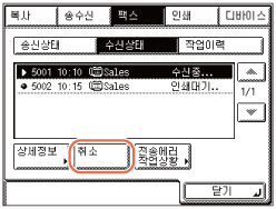 현재 수신 중인 작업을 선택하면 화면에 [취소]가 표시됩니다.