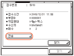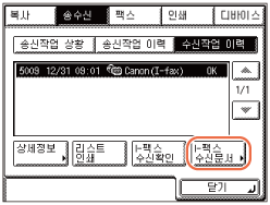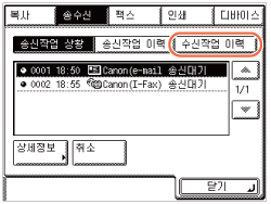 [수신작업 이력]을 누릅니다.