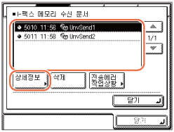 이 절에서는 메모리에 수신된 문서의 상세 정보를 확인하는 방법에 대해 설명합니다. 이러한 문서를 삭제하고 전송할 수 있습니다.