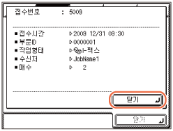 선택한 작업의 상세정보를 확인하고 → [닫기]를 누릅니다.