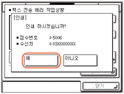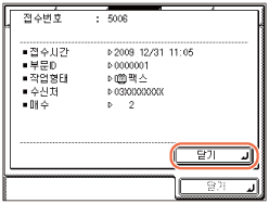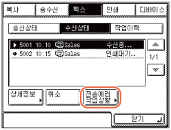 [시스템 상황] → [팩스] → [수신 작업 상황]을 누릅니다.
