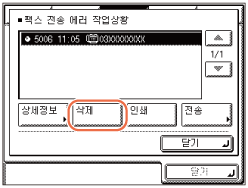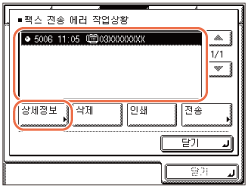 이 절에서는 기기에서 전송하지 못한 문서에 대한 상세 정보를 확인하는 방법에 대해 설명합니다. 이러한 문서를 삭제, 인쇄 및 전송할 수도 있습니다.