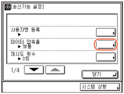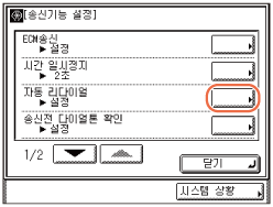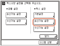 (사용자 모드) → [송수신 사양설정] → [수신 기능 설정](<팩스 설정> 아래)을 누릅니다.