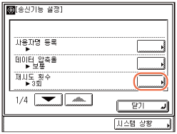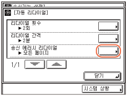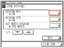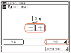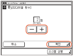 [-] 또는 [+]를 눌러 리다이얼 횟수를 설정하고 → [확인]을 누릅니다.