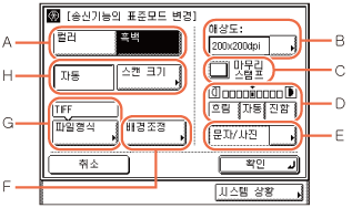 I-팩스와 팩스로 문서를 송신하는 경우 여기에서 설정한 컬러 모드 및 파일 형식을 사용할 수 없습니다.