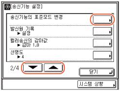 ]를 누르고 → [송신기능의 표준모드 변경]을 누릅니다.