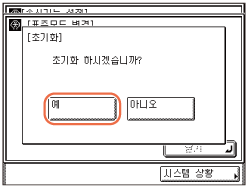 ]를 누르고 → [송신기능 설정의 초기화]를 누릅니다.