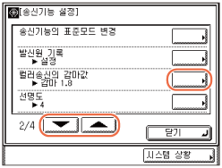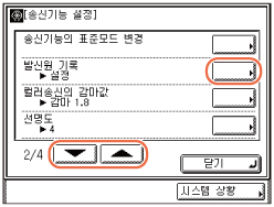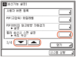 ]를 누르고 → [컬러 송신시 스캔 설정]을 누릅니다.