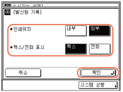 전화번호 표시: '팩스' (전화번호 표시는 선택 품목인 Super G3 팩스 보드-AG1을 기기에 설치한 경우에만 사용할 수 있습니다.)