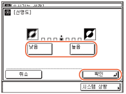 문자나 선을 선명하게 스캔하려면 [높음] 쪽으로 설정해야 합니다. 청사진이나 희미한 연필로 그린 이미지를 스캔할 때 적합한 설정입니다.