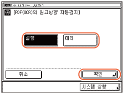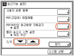 ]를 누르고 → [PDF(OCR) 원고방향 자동검출. 설정]을 누릅니다.