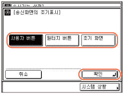 송신 조작 시 사용자 버튼 화면이 가장 먼저 표시됩니다.