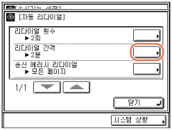 [-] 또는 [+]를 눌러 리다이얼 간격을 설정하고 → [확인]을 누릅니다.