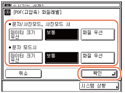 ]를 누르고 → [PDF(고압축) 화질레벨]을 누릅니다.