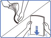 용지를 적재하기 전에 급지가 원활하게 되도록 용지 사이로 여러 차례 바람을 불어넣은 후 가장자리를 정렬하십시오.