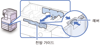 가이드를 올바르게 조정합니다. 그렇지 않으면 용지가 걸리거나 지저분하게 인쇄되거나 기기 내부가 지저분해질 수도 있습니다.