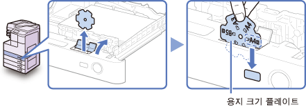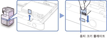 플레이트에 표시된 용지 크기에 기기에서 사용할 수 있는 크기가 포함될 수 있습니다.