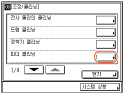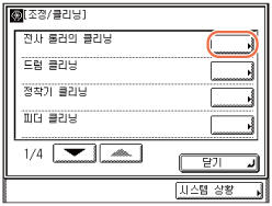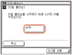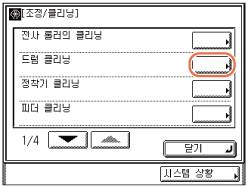 (사용자 모드) → [조정/클리닝] → [드럼 클리닝]을 누릅니다.