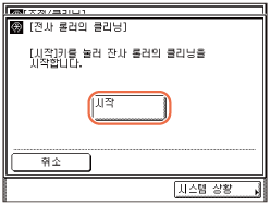 (사용자 모드) → [조정/클리닝] → [전사 롤러의 클리닝]을 누릅니다.