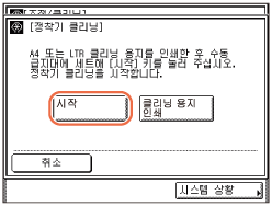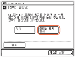 기기에서 에러가 발생한 경우에는 클리닝 용지를 인쇄할 수 없습니다. 클리닝 용지를 인쇄하기 전에 에러를 소거하십시오.